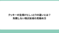 クッキーを焼いたとき、「これって生焼け?」と不安になったことはありませんか。しっとりを狙ったはずなのに、ただの加熱不足だったらどうしようと迷う瞬間は誰にでもあります。この記事では「クッキー 生焼け しっとり 違い」をテーマに、見た目・食感・...