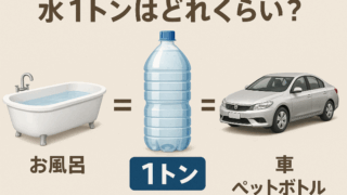 「水1トン」と聞いて、どのくらいの量や重さを思い浮かべますか。数字で見ると1,000リットル=1,000kgですが、実際にどれくらいのスケールなのかは想像しにくいですよね。この記事では、水1トンをお風呂・ペットボトル・軽自動車・人間など、身...