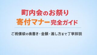 町内会のお祭りに寄付をする際、「ご祝儀袋の表書きはどう書けばいい?」「金額の目安は?」と悩む方も多いですよね。地域の伝統行事を支える寄付金は、単なるお金の支援ではなく、地域をつなぐ大切な心の交流でもあります。この記事では、町内会のお祭り寄付...